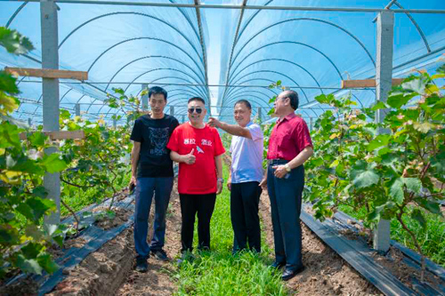 姜训书记向前来参观的领导介绍葡萄基地的发展规划