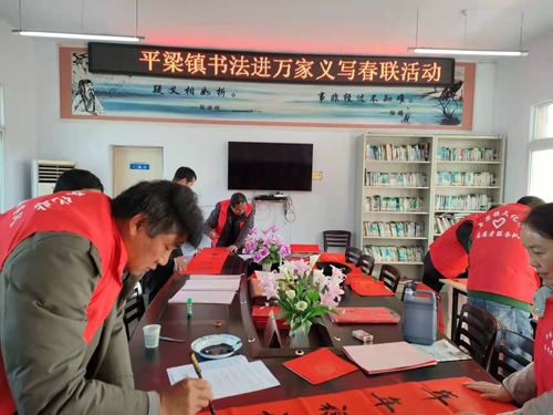 文化惠民送温暖,志愿迎新写春联。元月19日上午,在平梁镇文化站和兴隆佳苑社区、界牌村、蔡家河村图书室,来自汉阴县文联和平梁镇内的书法志愿服务者,兴致勃勃的开展义写春联、送春联活动,志愿者们都感到在这新春佳节即将到来之际能给乡亲们挥毫泼墨、义写春联,为父老乡亲送上真诚的新年祝福和新春的喜庆祥和而倍感欣慰。