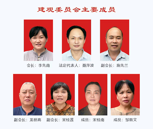 法定代表人聂萍波出身散居宗教世家,继承宗教事业后,从事宗教工作已30余年,工作认真负责,且乐善好施;会长李新南则利用自身特长为群众看病治病,让社区和乡村的众多百姓受益;副会长施先兰积极参与多个志愿者组织活动,热心公益、乐于奉献,还被市、县、镇有关单位授予了荣誉证书。
