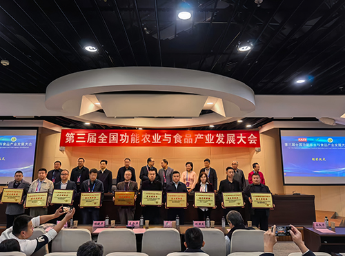 在第三届全国功能农业与食品产业发展大会上,由陕西功能农业与功能食品产业联盟筹备工作委员会组织、带领的来自陕西咸阳、渭南、商洛、汉中、安康等地区的20余家陕西功能农业与功能食品的代表企业参与并参加了本次大会,商洛地区陕西天吉龙生物科技有限公司、安康地区安康古青藤本农业开发有限公司、汉中地区陕西天汉国品生物高科有限公司、西安地区陕西正必达功能食品科技开发有限公司等4家代表企业分别荣获第三届全国功能农业与食品产业发展大会的《技术创新奖》和《产品创新奖》,受到了第三届全国功能农业与食品产业发展大会组委会的高度赞誉和嘉奖。
