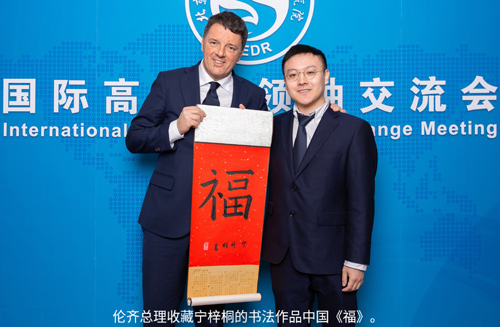 2020年1月11日,首都北京,宁梓桐应邀拜见了意大利历史上最年轻当选总理的伦齐和毛里求斯共和国历史上首位女总统阿米娜。会面现场,伦齐总理和阿米娜总统十分高兴的收藏了宁梓桐的书法作品中国《福》。