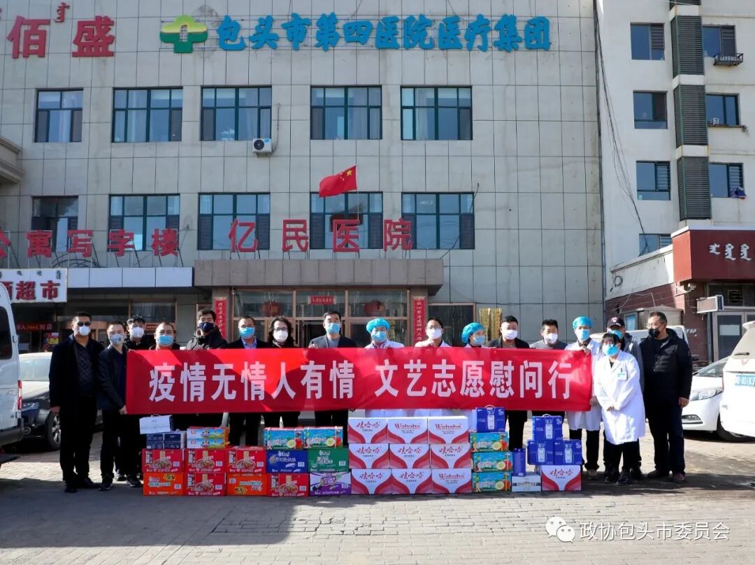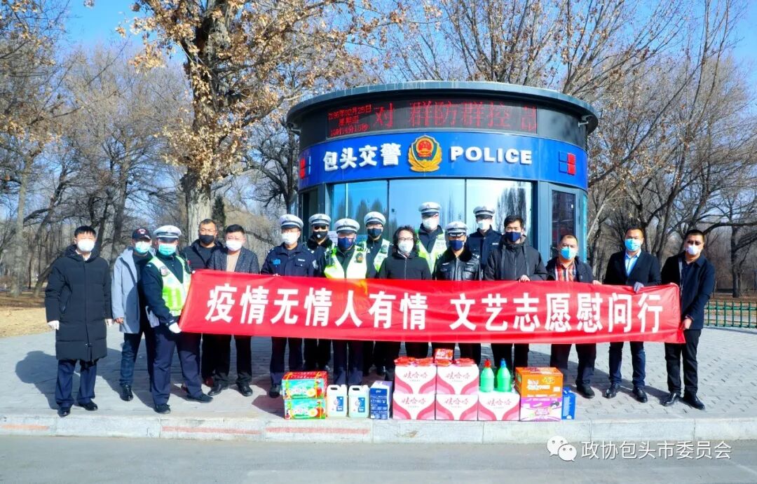 新冠肺炎疫情爆发以来,牵动着全国人民的心。在党和政府的坚强领导下,在全国人民群众的共同努力下,疫情形势出现积极变化,防控工作取得实效。2月25日上午,包头市政协常委、包头市文艺志愿者协会副主席、包头市音乐家协会副主席、青山区文艺志愿者协会主席天骏,带领爱心企业家及文艺志愿者,对包头火车站、包头市公安局交管支队特勤大队、包头市公安局交管支队青山大队、高新区南壕社区防疫点、亿民医院、北方医院等单位进行了慰问。