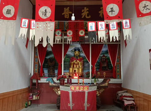 涧山寺坐北朝南,占地800平方米,建筑面积600平方米,三栋大殿(福主殿、财神殿、观音殿)呈长方体布局,既显威严庄重,又暗合传统风水文化的智慧结晶。其选址严格遵循阴阳五行学说:庙址位居涧山塅中央,象征“中央戊己土”;庙门正对南方朱雀位(下涧山),背靠北方玄武屏障(上涧山),形成“藏风聚气”的理想格局,故解放前素有“中流砥柱庙”之称。这一选址不仅体现了先民对自然环境的敬畏与顺应,更成为研究传统建筑文化的活化石。
