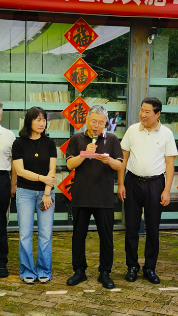 房山区文联党委书记郝金英则从“两山”理念角度,强调艺术创作当为时代立传、为山河代言,她深情地说:“2005年,习总书记提出的‘绿水青山就是金山银山’理念已经成为全党全社会的共识和行动,成为新发展理念的重要组成部分,也被国际社会高度认可,今天,艺术家们用饱满的热情和精湛的技艺,将‘两山’理念的哲思、对壮美山河的热爱、对绿色发展的期盼,倾注于尺素之间,就是要通过书法的形式倡导大众成为优美环境的‘受益者’,争做美丽家园的‘建设者’,牢记山清水秀‘金不换’,捧牢生态资源‘金饭碗’,用好绿色发展‘金钥匙’。今天的展览,不仅是书法艺术的盛宴,更是生态成果的文化表达。”最后,她倡议广大文艺工作者和爱好者,要以友好互助的奉献精神,不忘初心的奋斗精神,保护生态的担当精神,深入学习贯彻落实习近平生态文明思想,用手中的笔,凝聚大众环保力量,倡导全民低碳生活,描绘更美的‘绿水青山’,换来成色更足的‘金山银山’,为生态文明立心、为绿色发展立行、为乡村振兴立言、为志愿奉献立德。