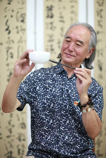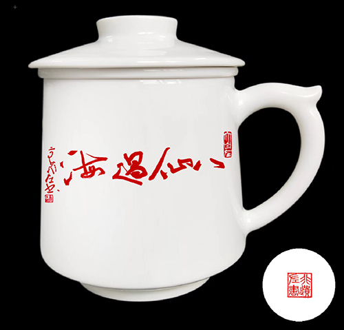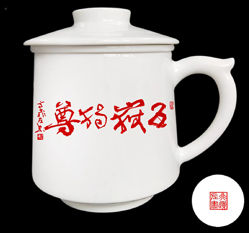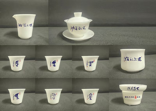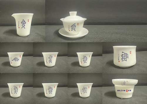 中国传统文化,博大精深,源远流长。在历史长河中,中国传统文化的重要载体书法,在现当代已退出了实用,取而代之的是印刷体、电脑体。大多数书法家都停留在书写唐诗、宋词、书论、儒释道经文、通俗吉祥警句范围。几十年来,高菲先生终于找到了一条具体化、系列化,看得见、摸得着的文创载体。自2012年始,他开始研究左书文创产品,分别有木刻、紫砂壶、陶瓷盘子、杯子、茶壶等,尤其是自2025年10月起,在福建德化开发几十款德化窑璞玉三件套老板杯,五件套、十件套茶具及盘子、摆件,他将中国传统文化如:中国十大神话故事、四大文明、历史典故、武术、中医、京剧、名言警句、酒文化、茶文化等分别书写成各种书体,烧制于德化窑璞玉名瓷之上,成为“非遗左书”文创第一人,他是一个名副其实的书法传承中国文化的探索者和实践者!