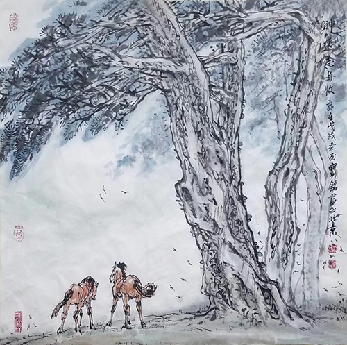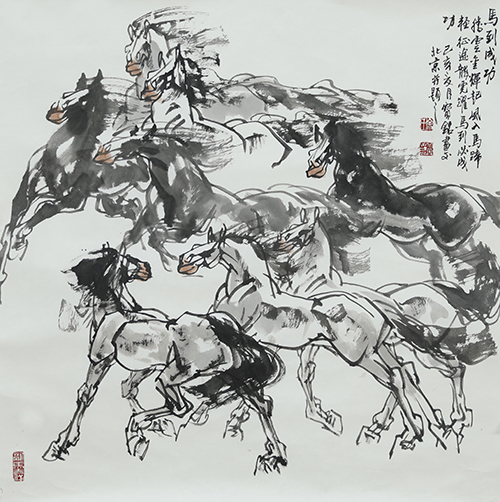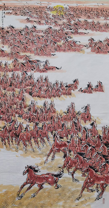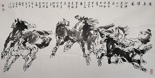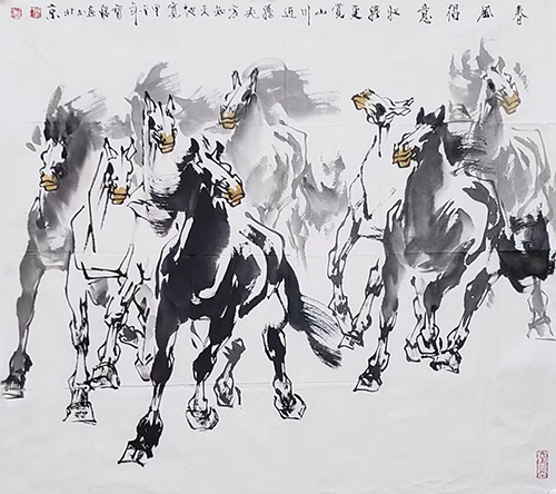 他总结出自己的画马心得:“要画出自己的风格,必须在汲取前人基础上,去观察自然、取法自然、取百家之长、融会贯通。”他深知,艺术之路没有捷径可走,只有不断地学习、实践和创新,才能走出属于自己的艺术天地。通过写生和笔墨的千锤百炼,他对马的姿态、神情乃至性格有了深刻理解。