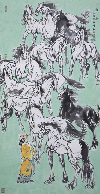 古代社会视马为安邦定国之本,历代帝王与英雄皆对马喜爱有加。马不仅具有实用价值,其俊美,健硕的姿态更给人以审美享受,引得无数艺术家为之倾心颂扬。中国绘画以马为题材的传统源远流长,战国时韩非就有“画犬马难,画鬼魅易”之论,汉画中以马为题材的作品比比皆是,唐代画马更是独立成科,涌现出曹霸、陈闳、韩干、韦偃等以专事画马而载誉画史的大家。韩干“内厩之马,皆臣之师也”的说法,为后世画家树立了典范,激励着一代又一代的画家们不断追求艺术的真谛。