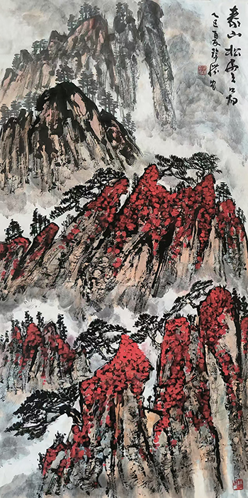 其作品师法自然、师古出新,形成了属于自己的内熟外生、沉酣朴拙、磅礴厚重的绘画语言和独特面貌。最可贵的是,有人生和艺术上守拙的双重取向,以“我思故我在”的独立精神应对世象,他将由悟性而得的大深沉和大沉静,源源不绝地倾泻于笔端,努力提炼和升华着国画笔墨的纯粹和澄明。
