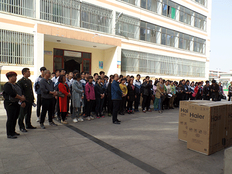 月1日,在山西省太谷二中启航学校学生公寓楼前举行了一场简单而特别的献爱心捐赠仪式。由64位太谷二中启航学校家长自发自愿,通过学校家委会组织向该校学生公寓楼捐赠价值6400多元12台海尔牌洗衣机,以感恩太谷二中启航学校董事长邢如瑞女士及老师们对学生的无私关爱和细心照顾。同时,此举也将极大方便住校生换洗衣服之难。校领导、楼妈、住校生参加了交接仪式,家长代表、校领导、学生代表和楼妈代表都作了精彩发言。